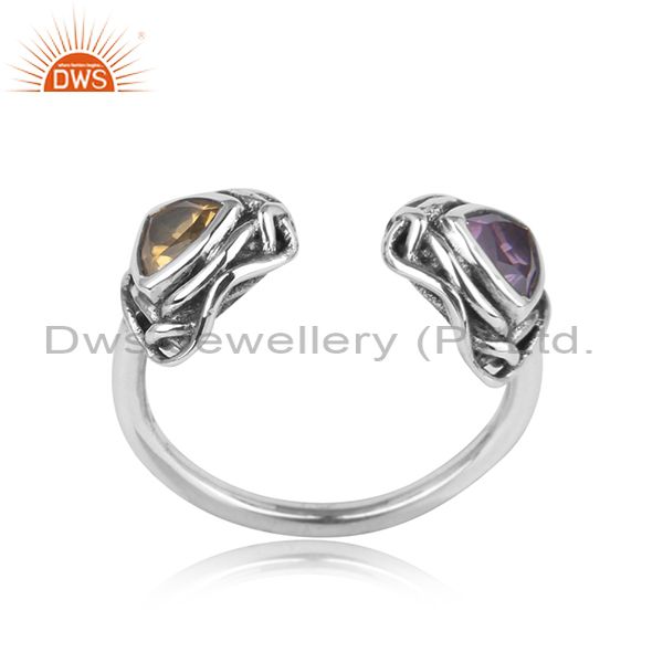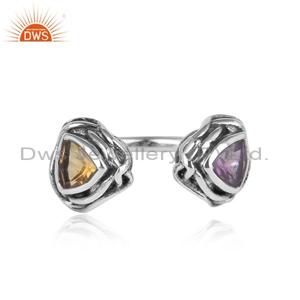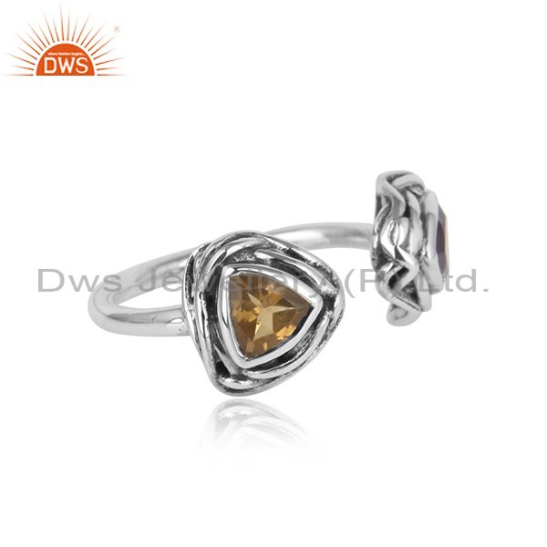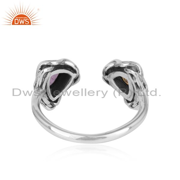 Handtextured Oxidized Silver Ring with Amethyst, Citrine