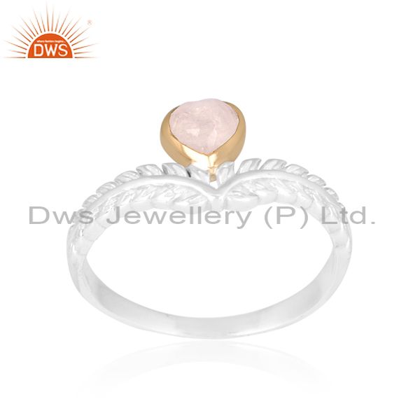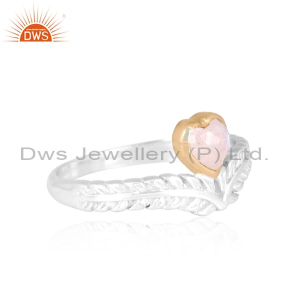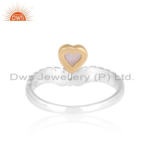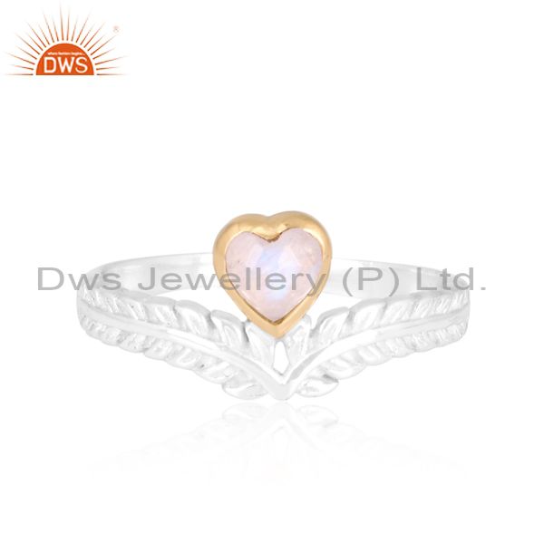 Heart Cut Rainbow Moon Stone Set Gold On Fine Silver Ring