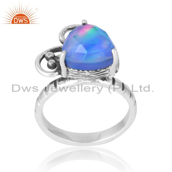 Heart Model Ring Valentine In Aurora Opal In Silver Metal