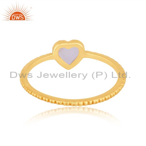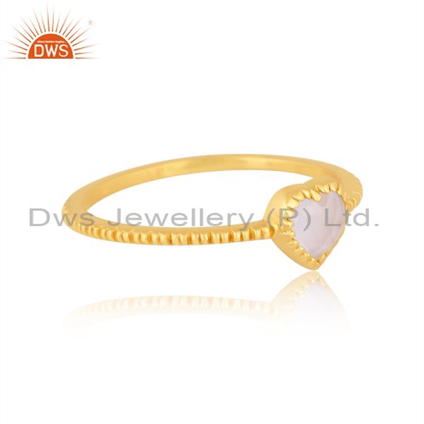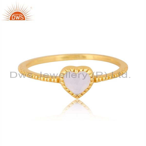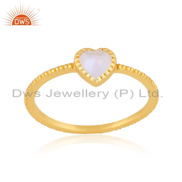 Heart Shaped Rainbow Moon Stone Set 18K Gold On Silver Ring