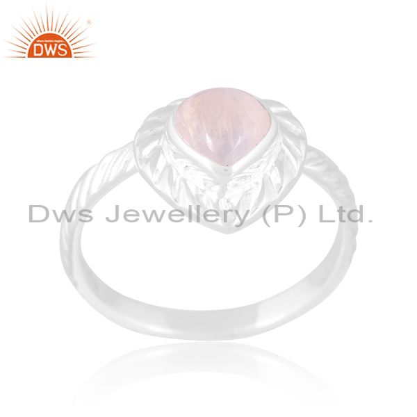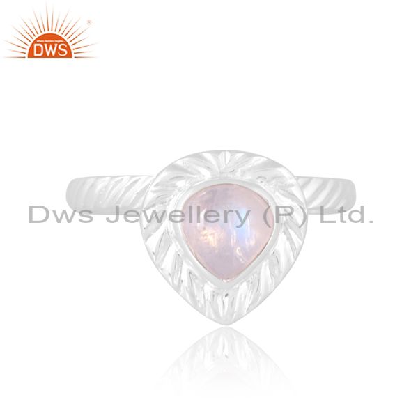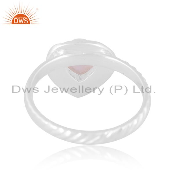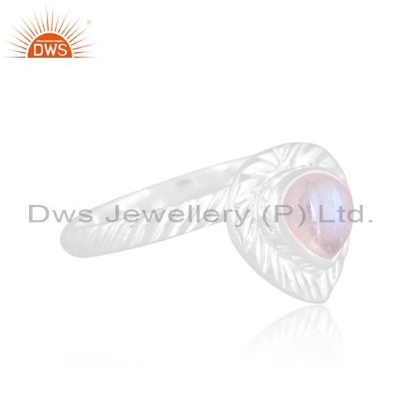 Heart Shaped Rainbow Moonstone Cabochon On Silver Ring