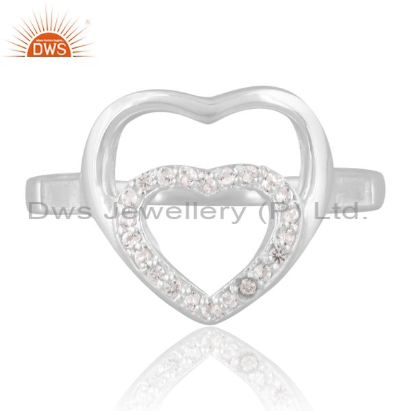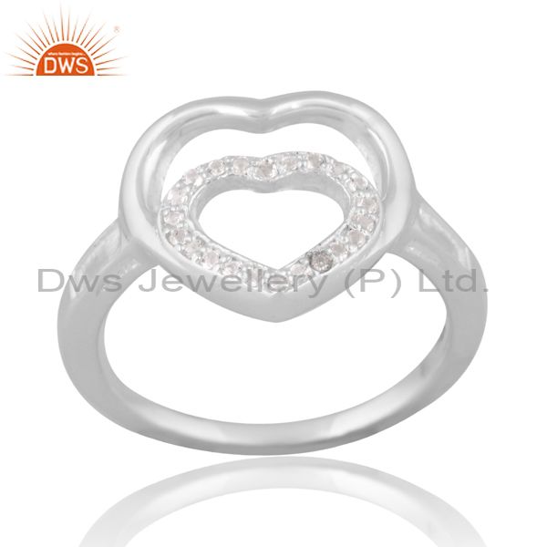 Heart Shaped Sterling Silver Ring With White Topaz Stone