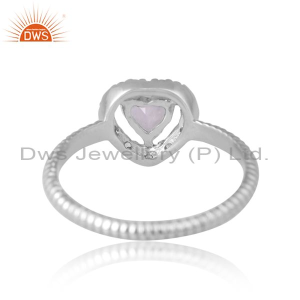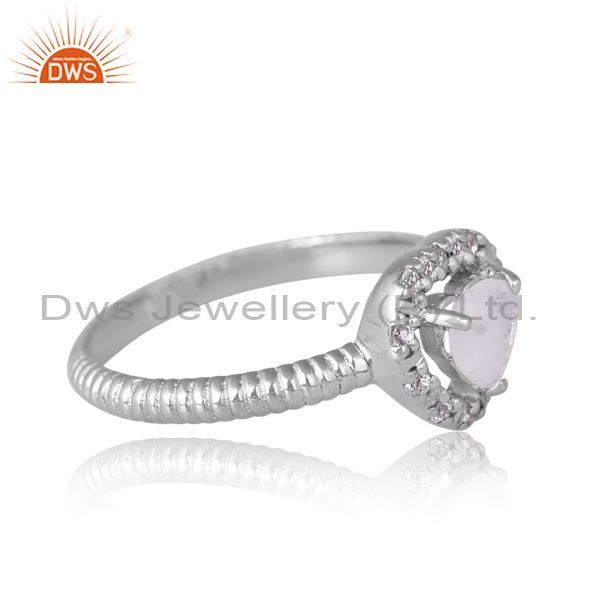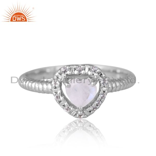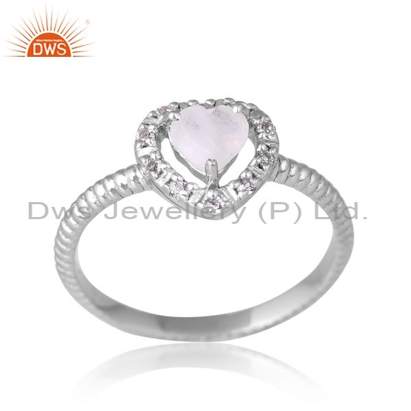 Heart Silver Ring With Rainbow Moonstone And White Topaz
