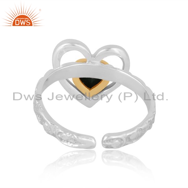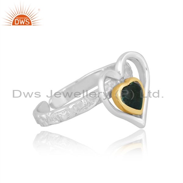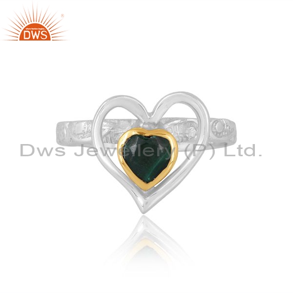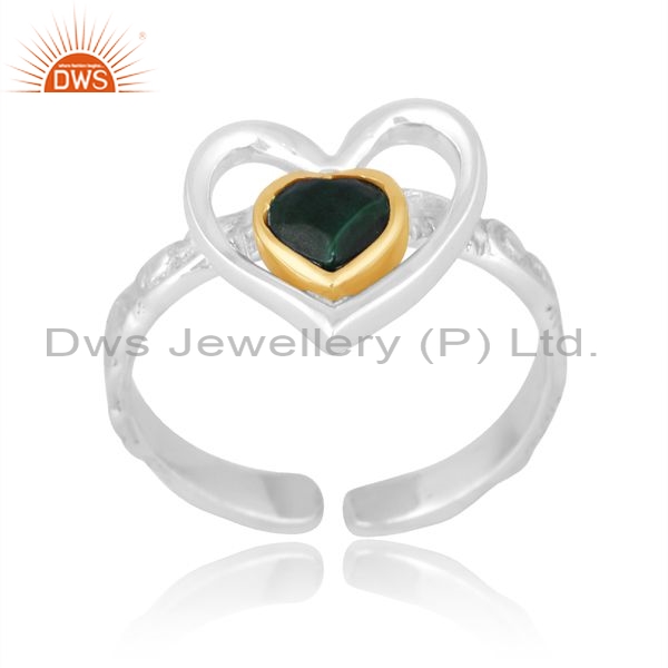 Heart Sterling Silver Gold White Ring With Malachite Stone
