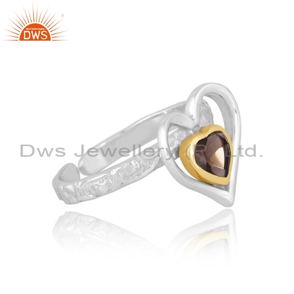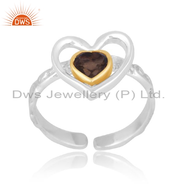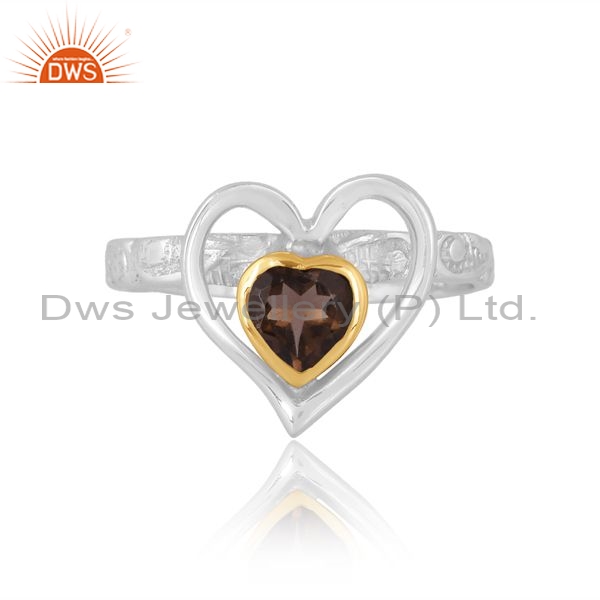 Heart Sterling Silver Gold White Ring With Smokey Stone