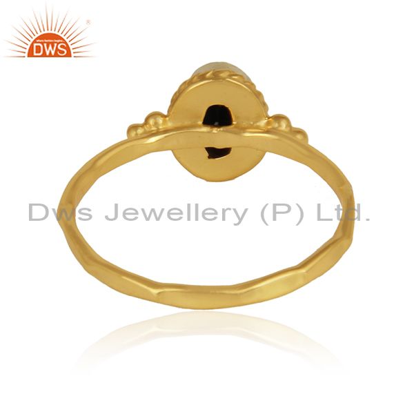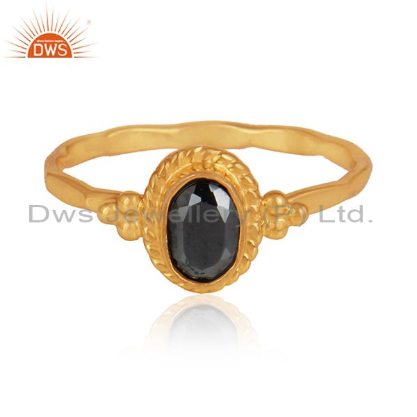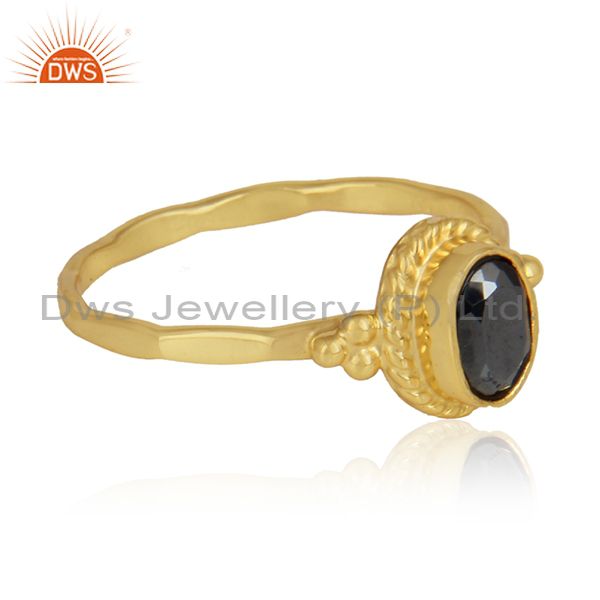 Hematite Gemstone Designer Gold Plated 925 Silver Womens Rings