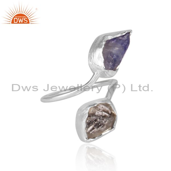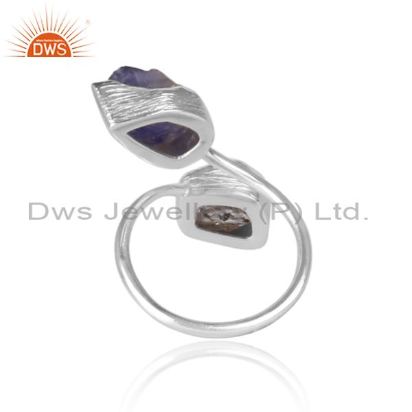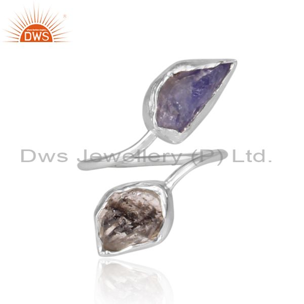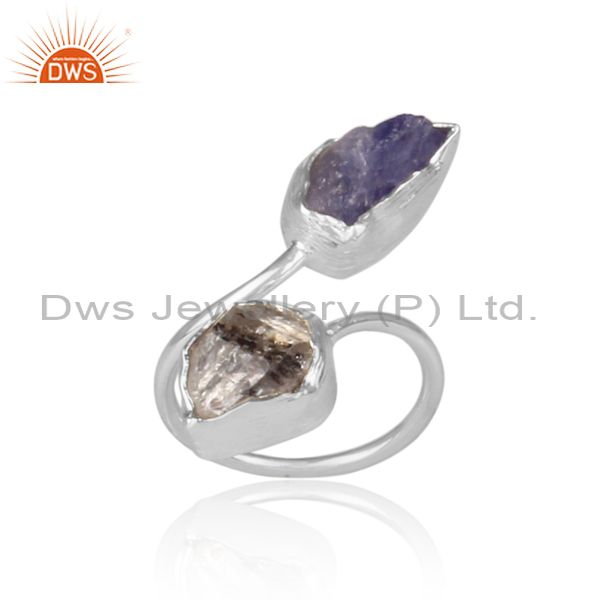 Herkimer Diamond And Tanzanite Set Designer Fine Silver Ring