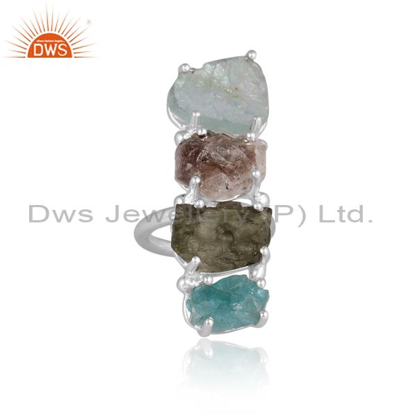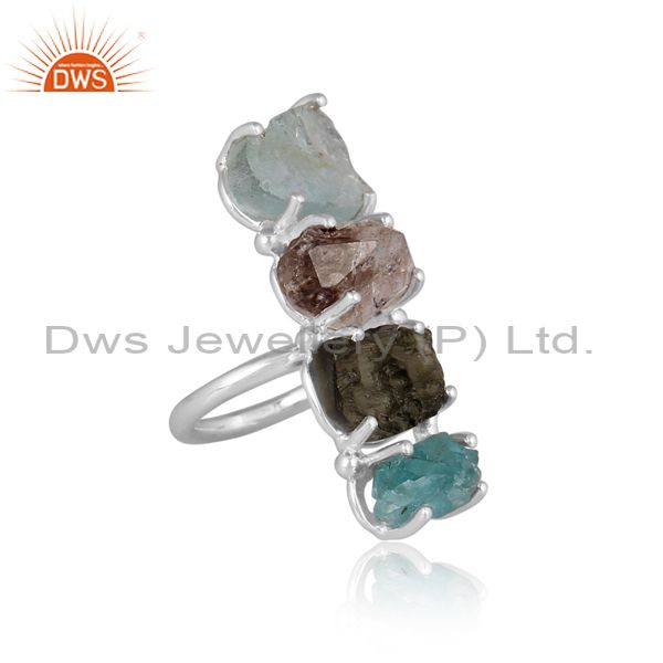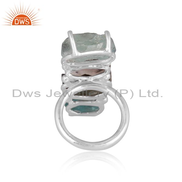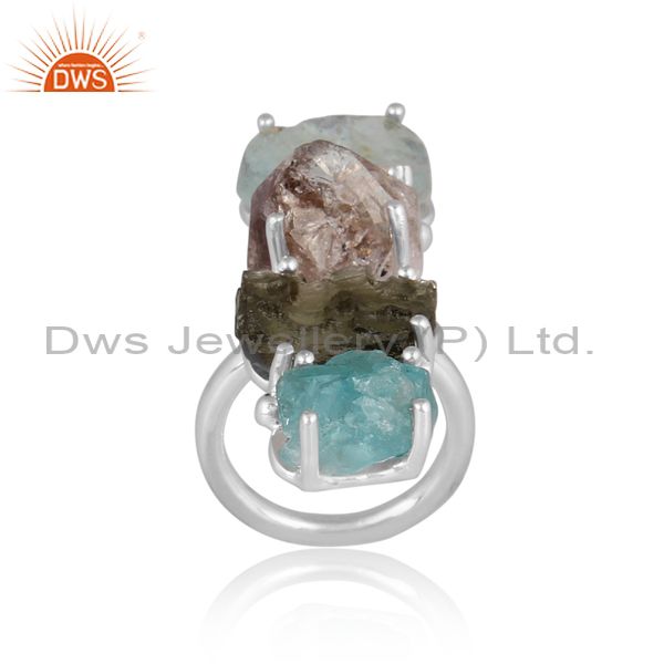 Herkimer Diamond, Aquamarine, Apatite Set Fine Silver Ring