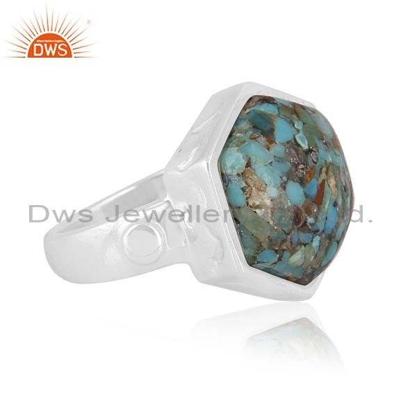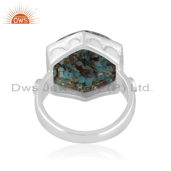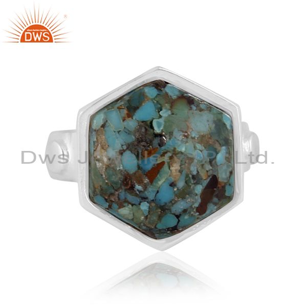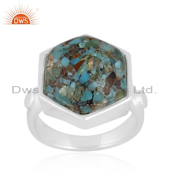 Hexagonal Boulder Turquoise Set Fine Silver Abstract Ring