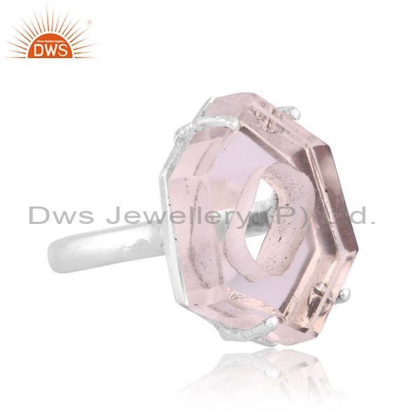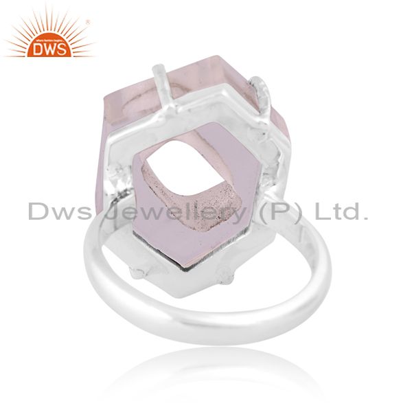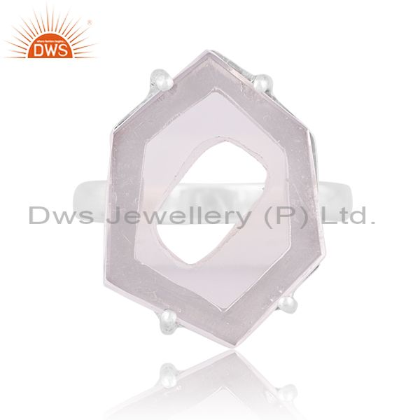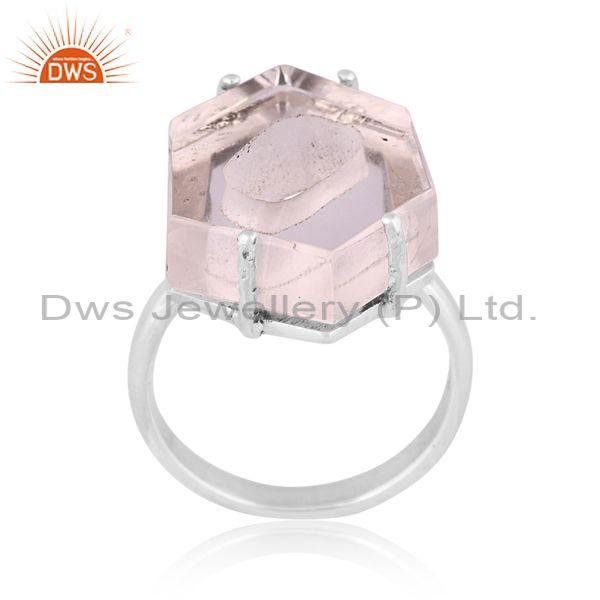Hexagonal Crystal Quartz Coin Set Oxidized 925 Silver Ring
