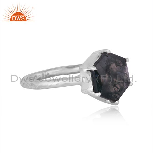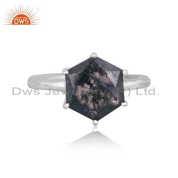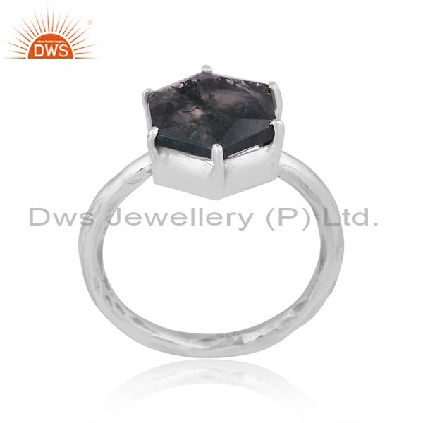 Hexagonal Moss Agate Set Oxidized Silver Handmade Fancy Ring
