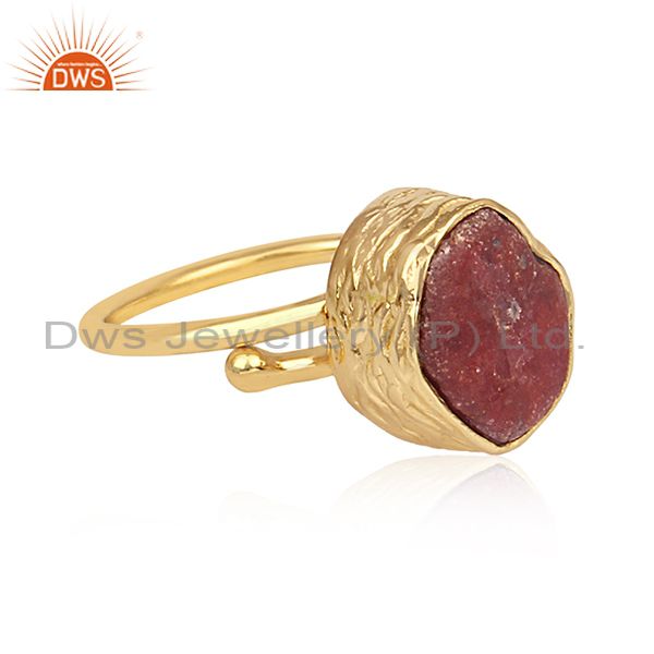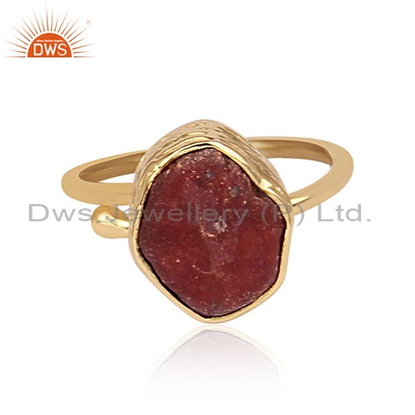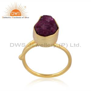 Hexagonal Ruby Set Gold On Sterling Silver Statement Ring