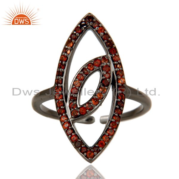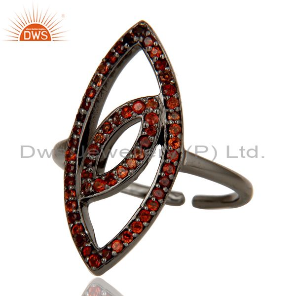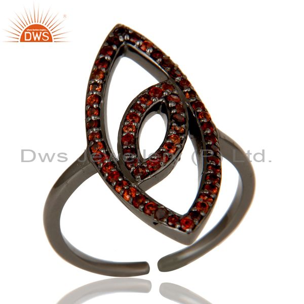 High Polish Black Oxidized Sterling Silver Garnet Round Cut Statement Midi Ring