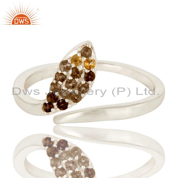 High Polish Sterling Silver Smoky Quartz And Citrine Adjustable Snake Ring