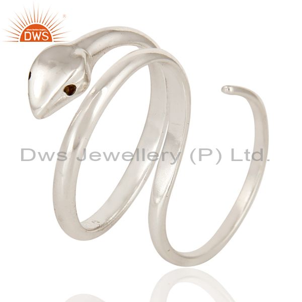 High Polish Sterling Silver Smoky Quartz Two Finger Adjustable Snake Ring