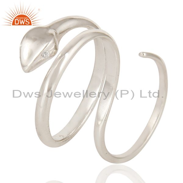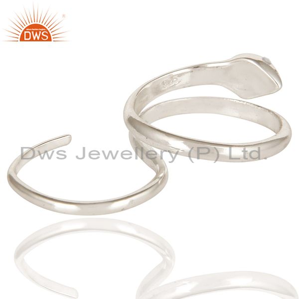 High Polished Sterling Silver Two Finger Adjustable Snake Ring With White Topaz
