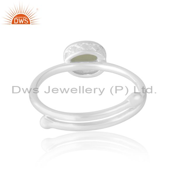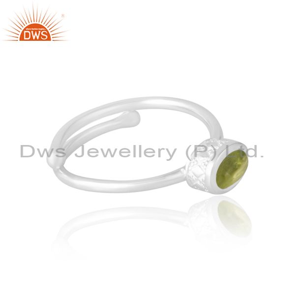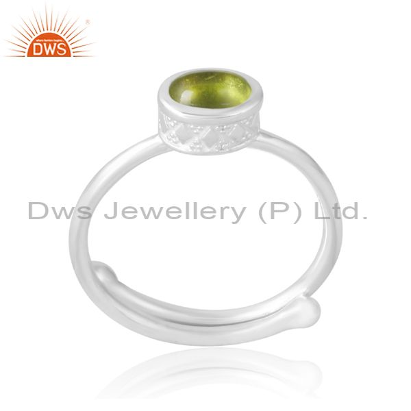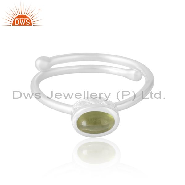Horizontal Oval Peridot Cabushion Unisex Silver Ring Women