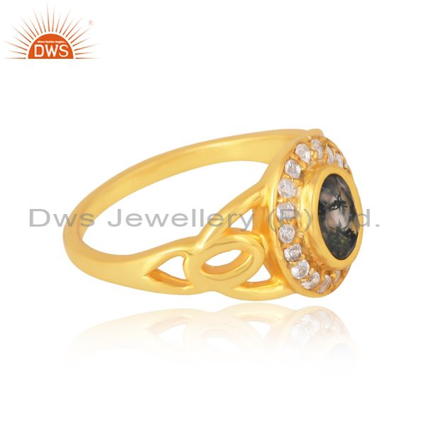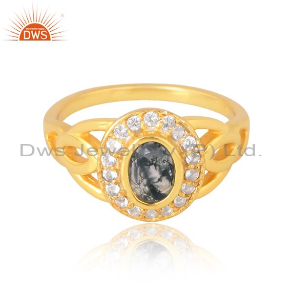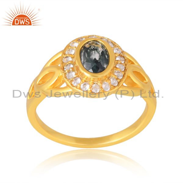 Hot Handcrafted Ring In Silver Gold With Agate And Topaz