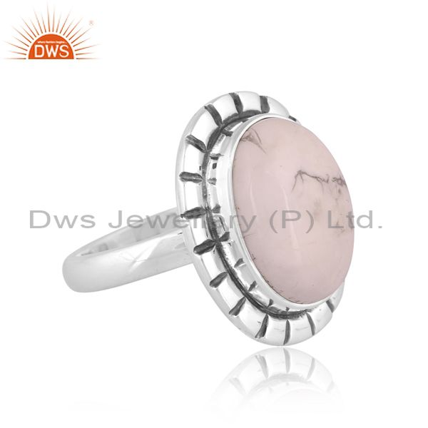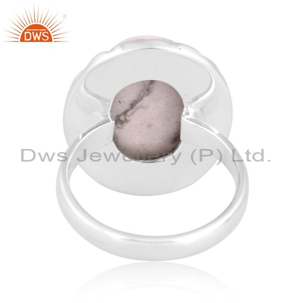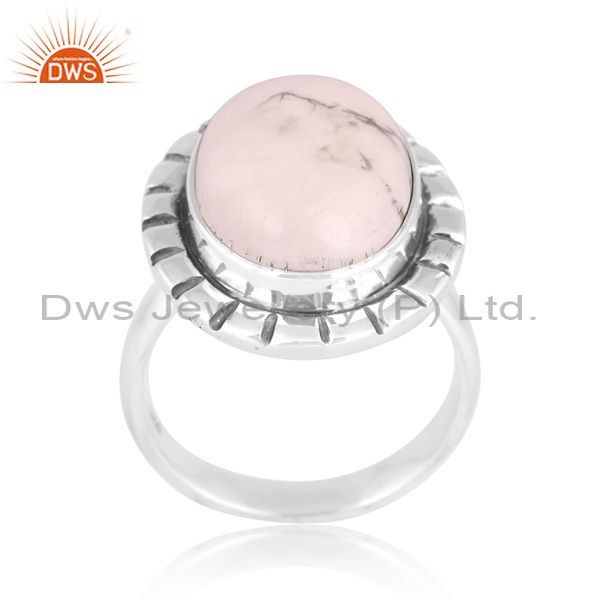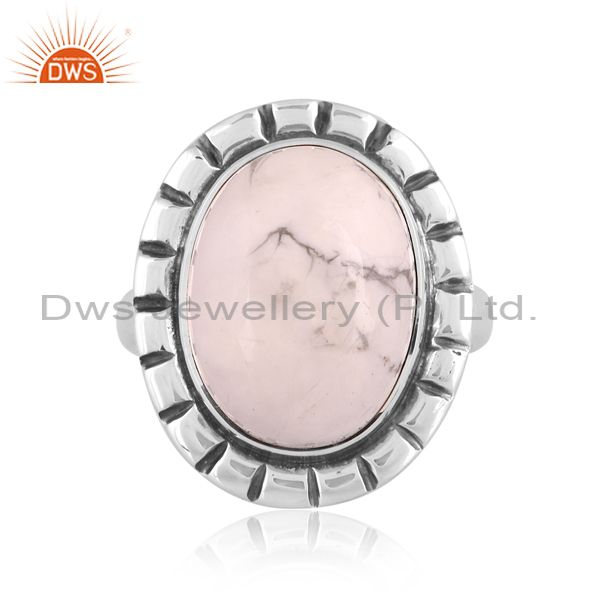 Howlite Cabochon Round On Sterling Silver Ring Oxidized