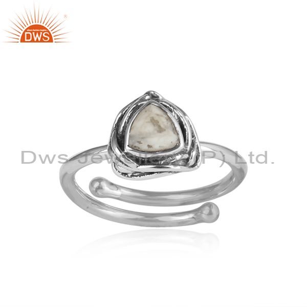 Howlite Cut Sterling Silver Triangular Adjustable Ring