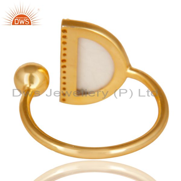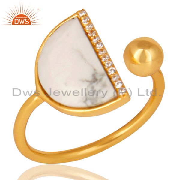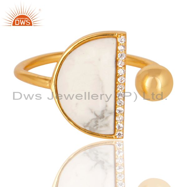 Howlite Half Moon Ring Cz Studded 14K Gold Plated Sterling Silver Ring