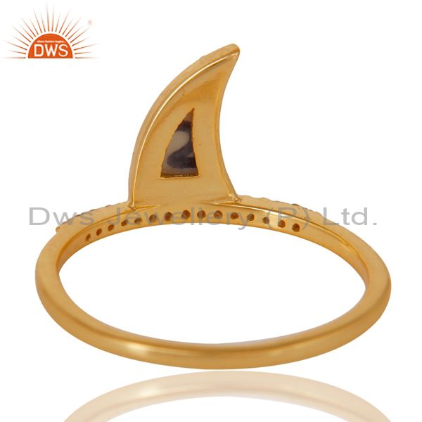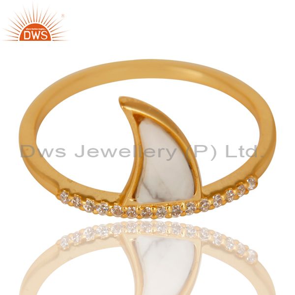 Howlite Horn Cz Studded Adjustable 14K Gold Plated 92.5 Sterling Silver Ring