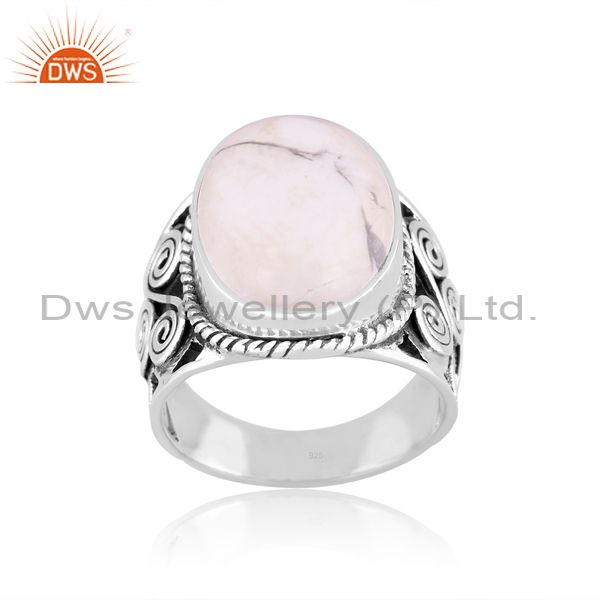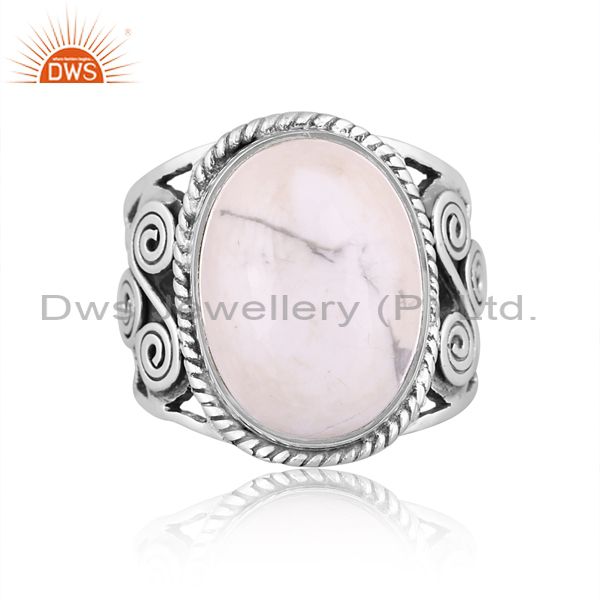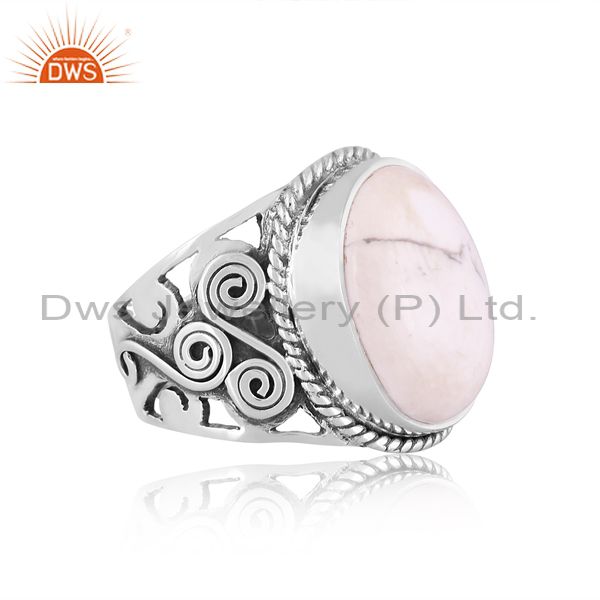 Howlite Set Oxidized 925 Silver Statement Traditional Ring