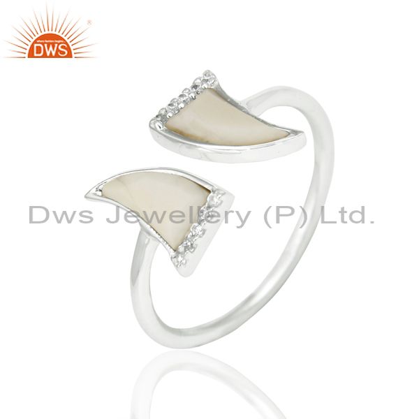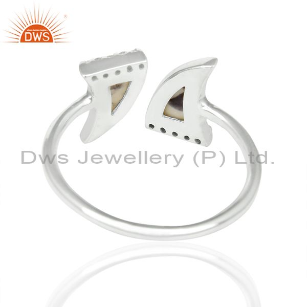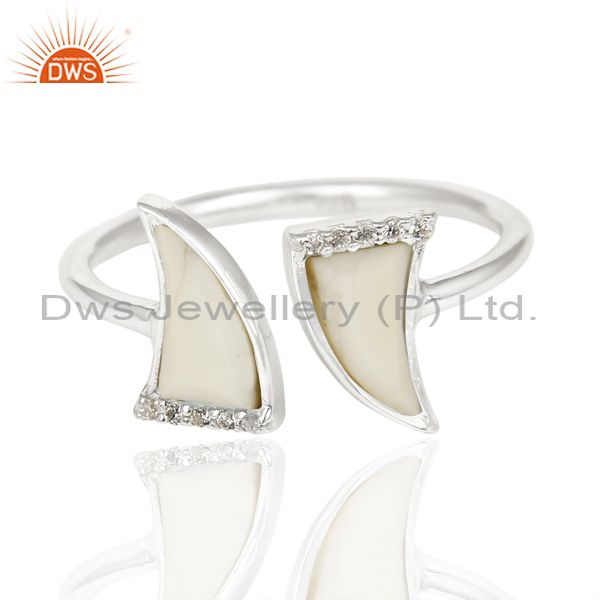 Howlite Two Horn Cz Studded Openable Adjustable 92.5 Sterling Silver Ring