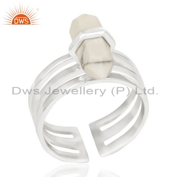 Howlite Wide Horn Adjustable Openable 92.5 Sterling Silver Ring