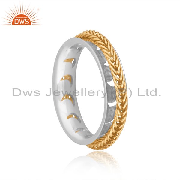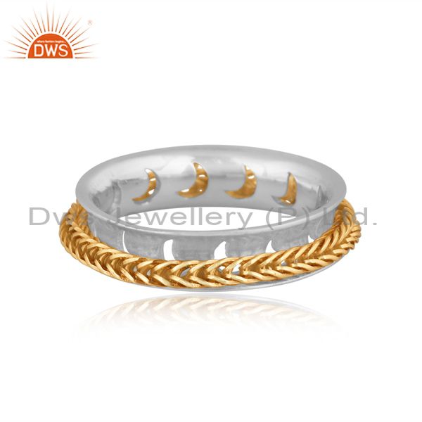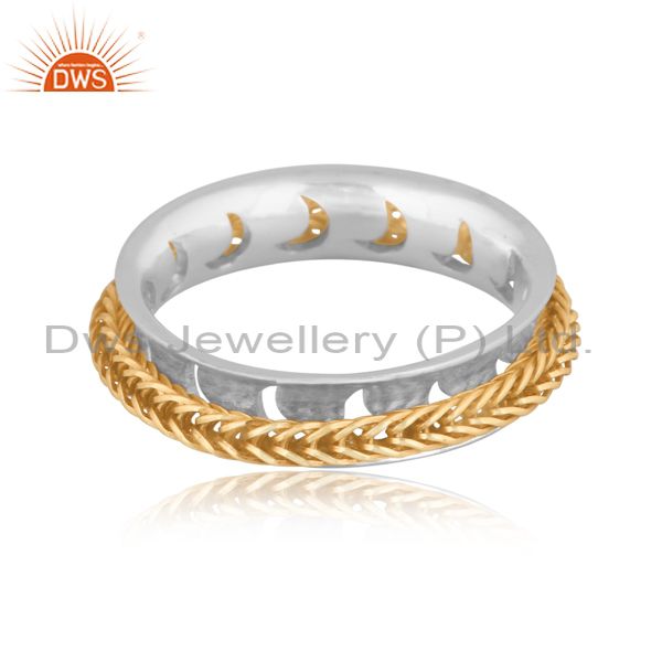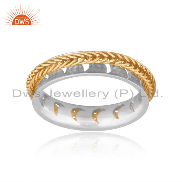 Impressed Chain Pattern Gold On Fine 925 Silver Band Ring