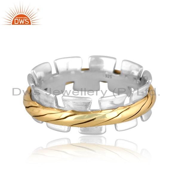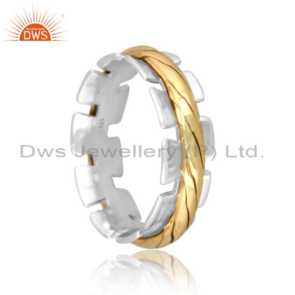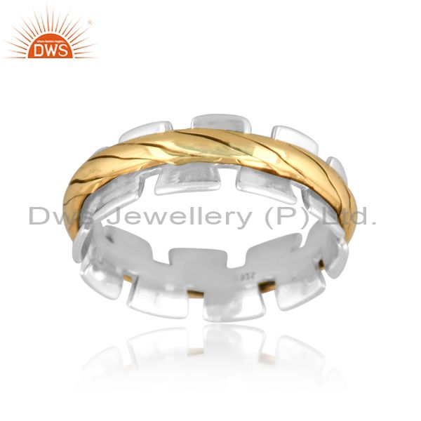 Impressed Chain Pattern Gold On Fine Silver Handmade Ring