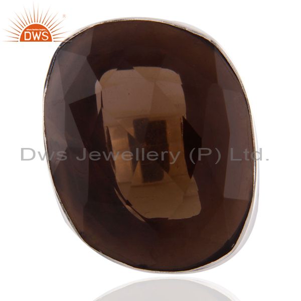 India Natural Smoky Quartz Gemstone 925 Sterling Silver Bezel Setting Ring