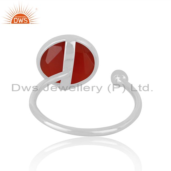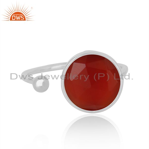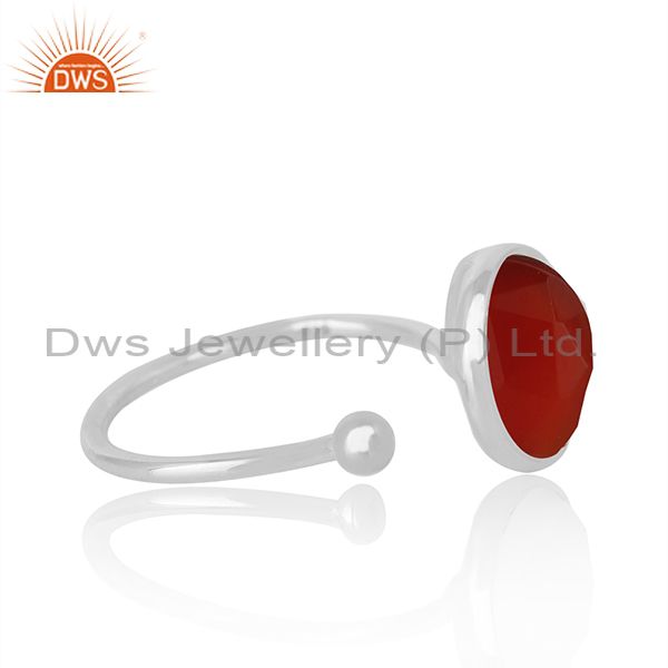 Indian 925 Sterling Fine Silver Natural Red Onyx Gemstone Ring Jewelry