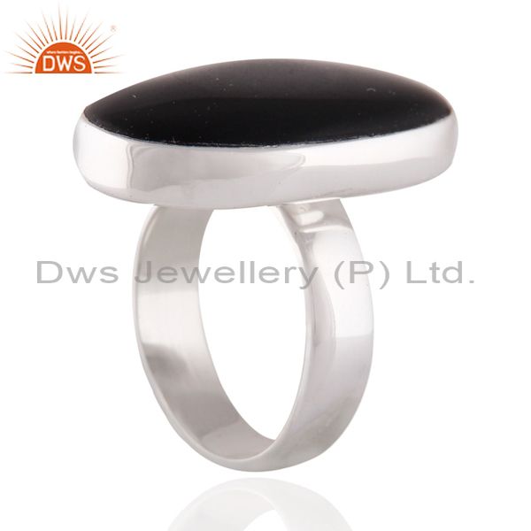 Indian Handmade Solid Sterling Silver Black Onyx Gemstone Ring Sz 8