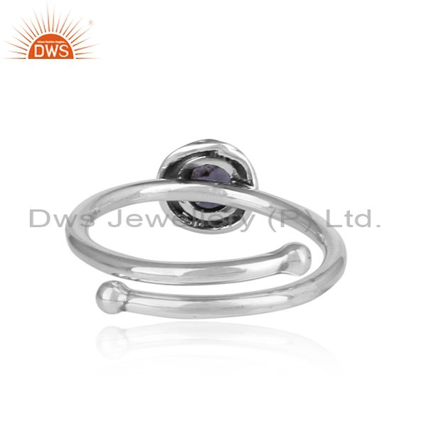 Iolite Set Adjustable 925 Silver Ring For All Sizes