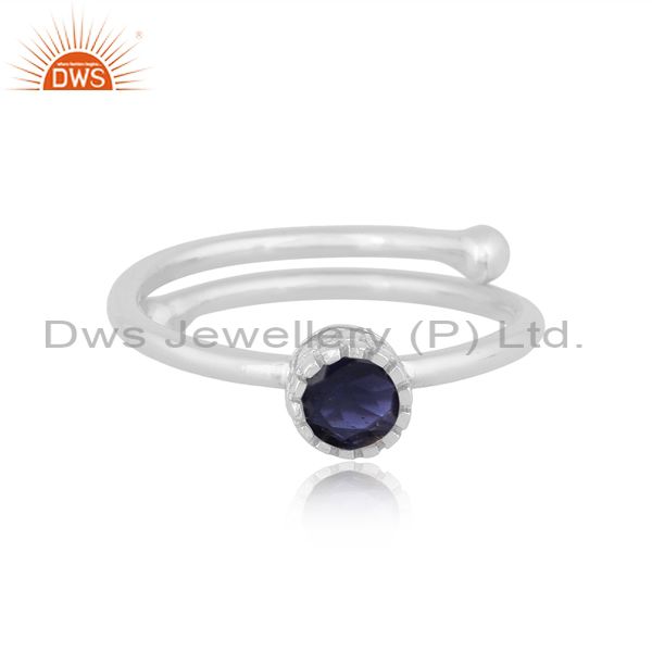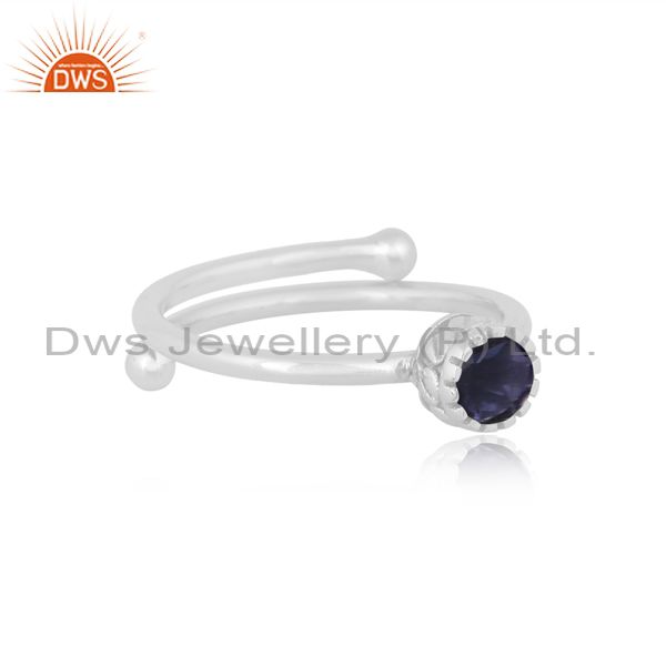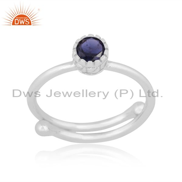 Iolite Set Fine 925 Sterling Silver Designer Crown Ring