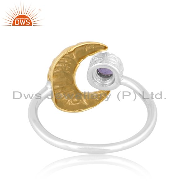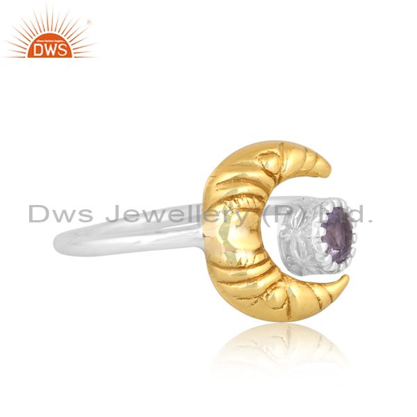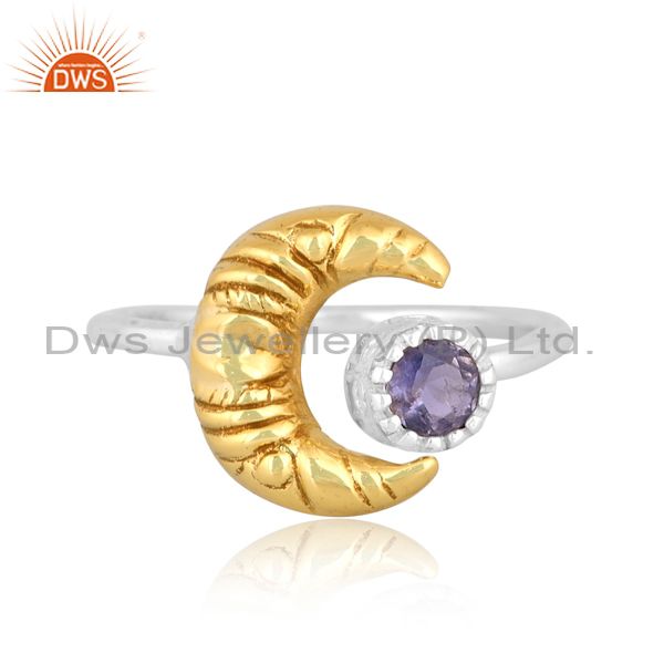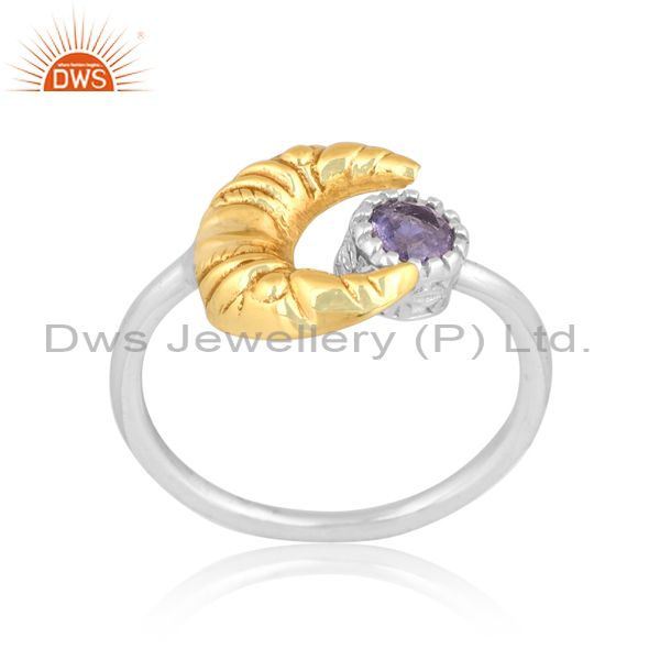 Iolite Studded Wire Finish White & Gold Sterling Silver Ring