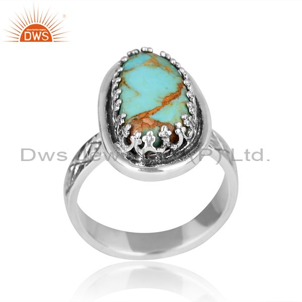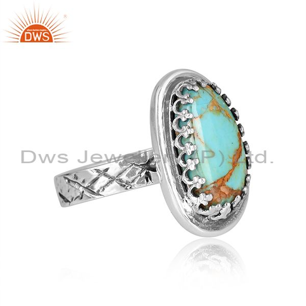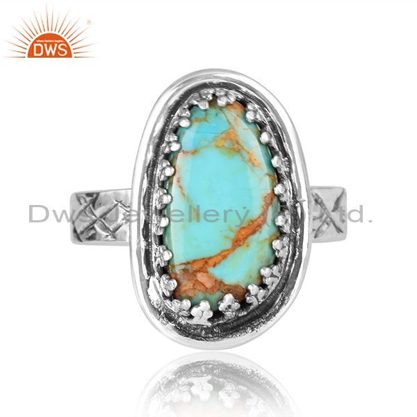Kingman Turquoise Gem On Oxidized Sterling Silver Ring