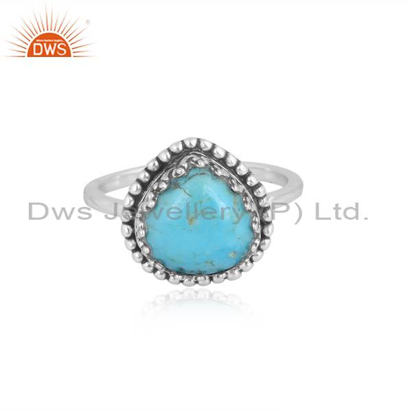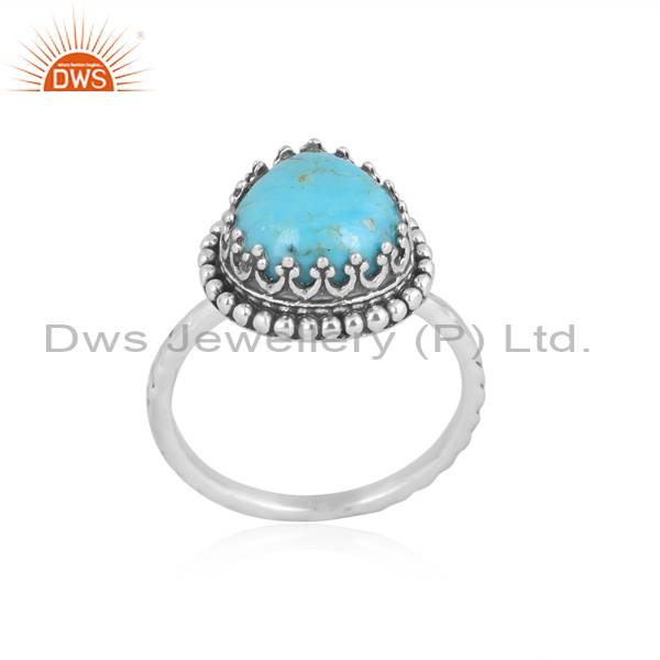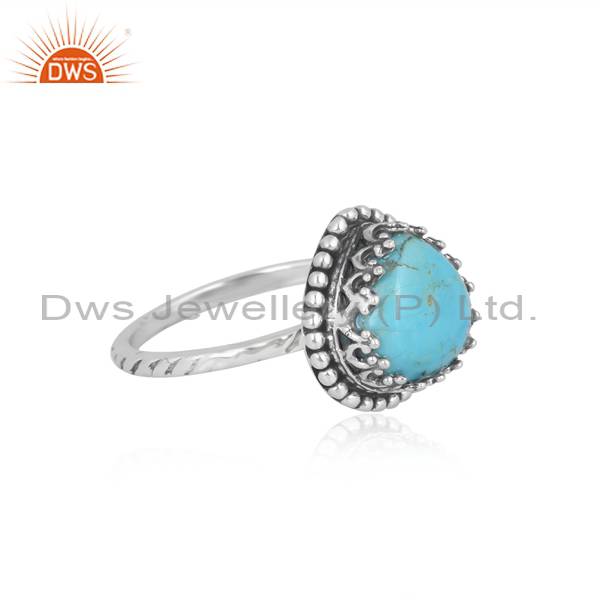 Kingman Turquoise Oxidized 925 Silver Ring For Girls