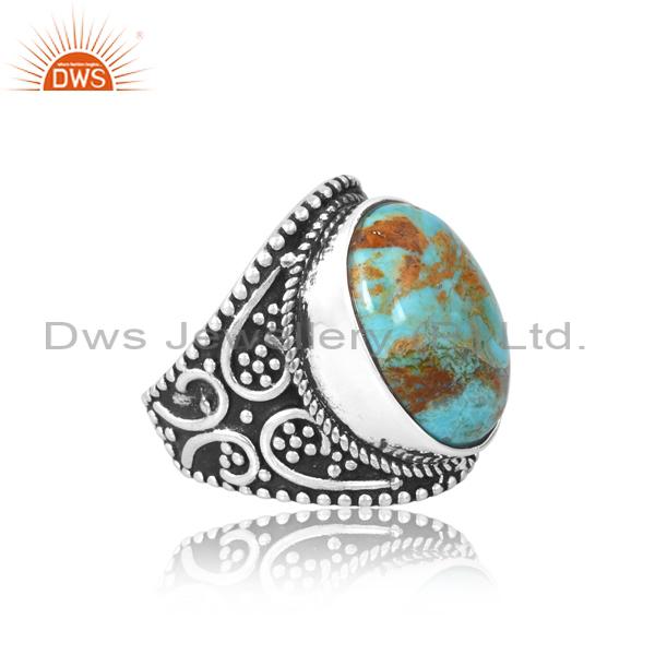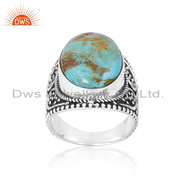 Kingman Turquoise Oxidized Finger Ring For Girls