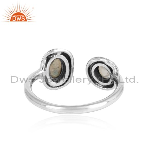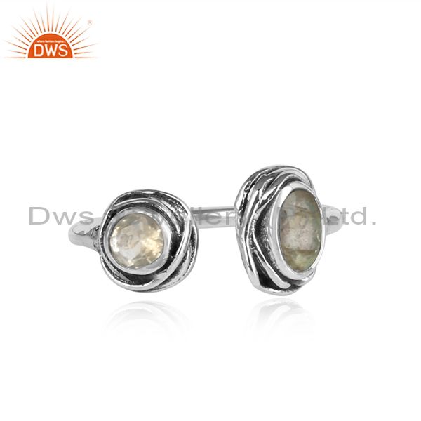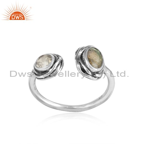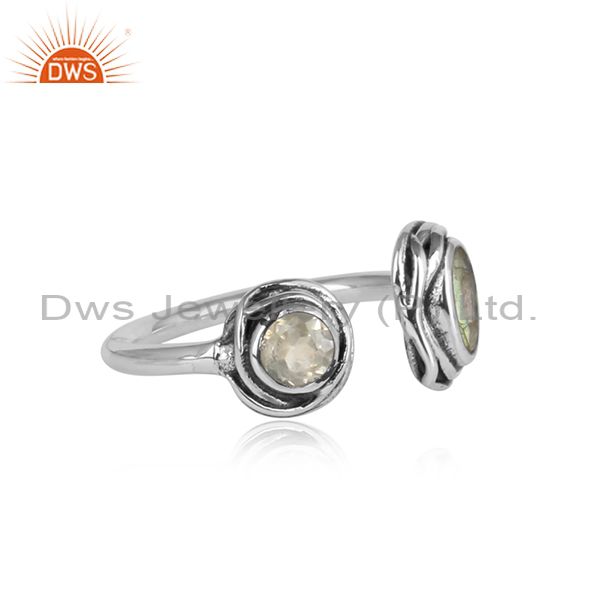 Labradorite & Crystal Quartz Cut Silver Adjustable Ring