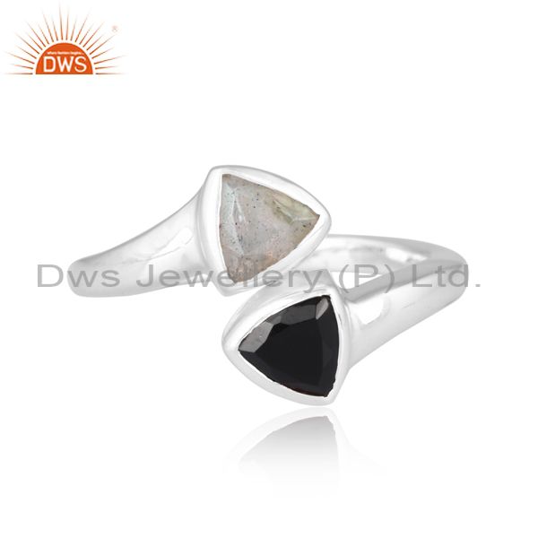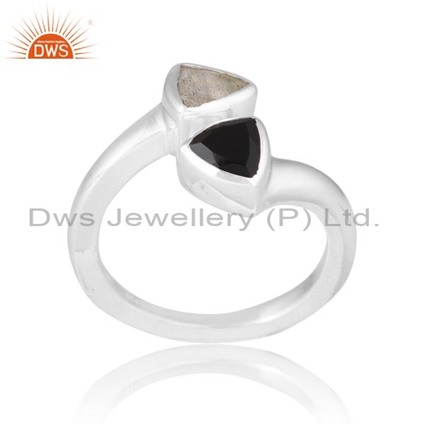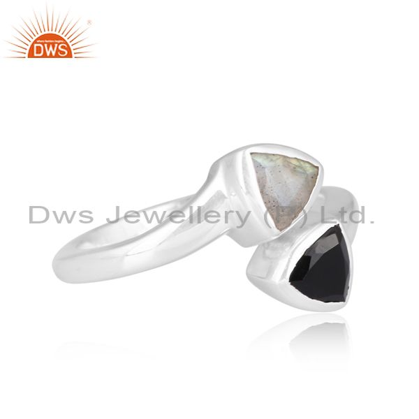 Labradorite And Black Onyx Set Fine 925 Silver Handmade Ring