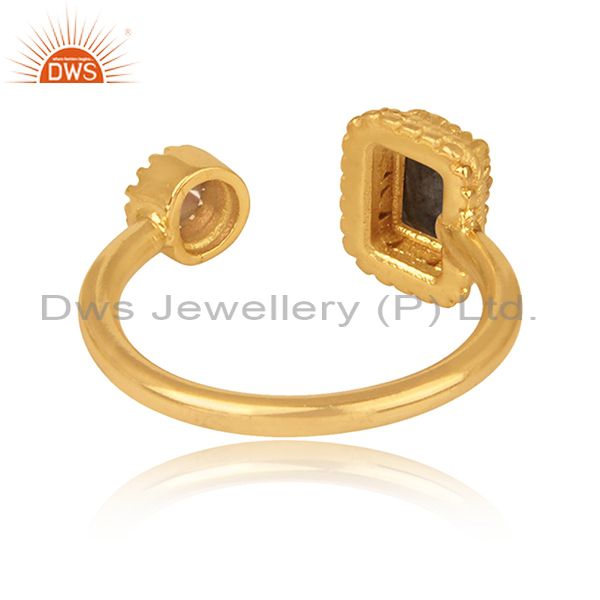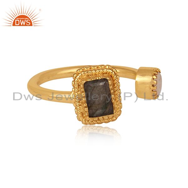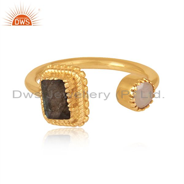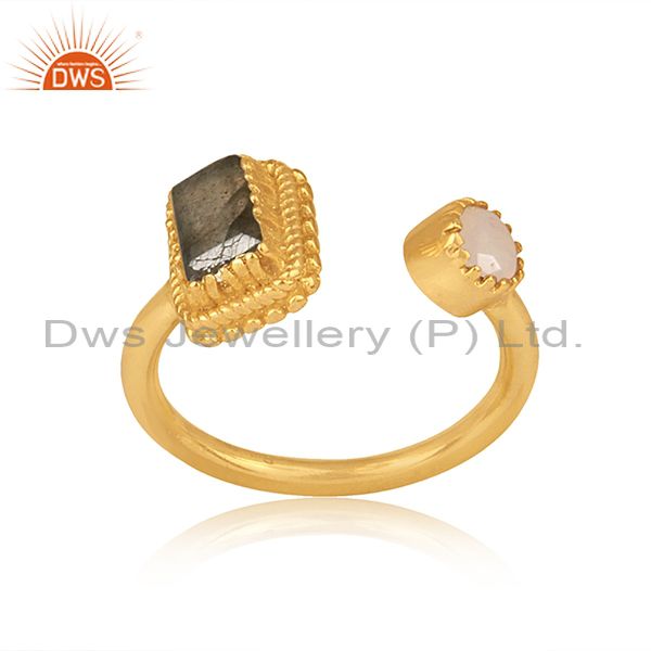 Labradorite And Ethiopian Opal Set Gold On 925 Silver Ring