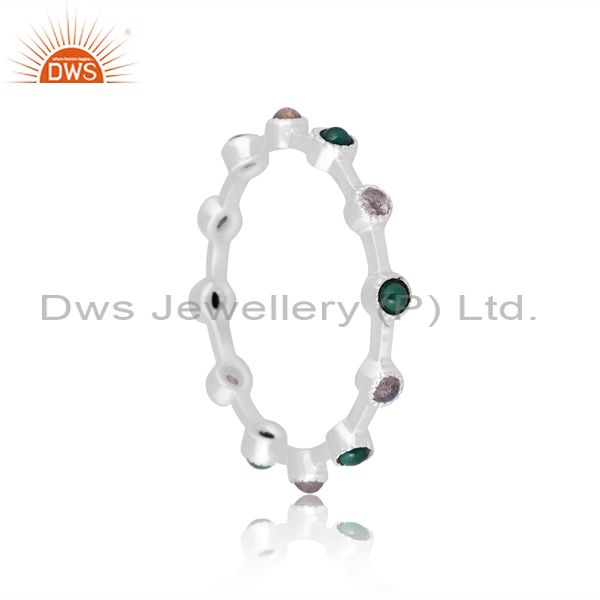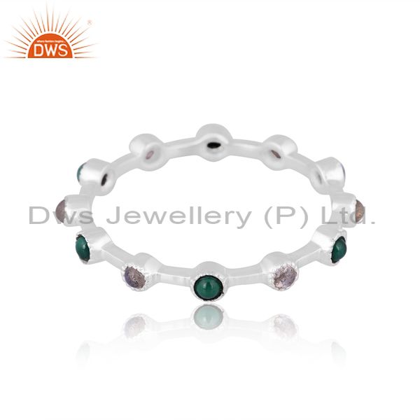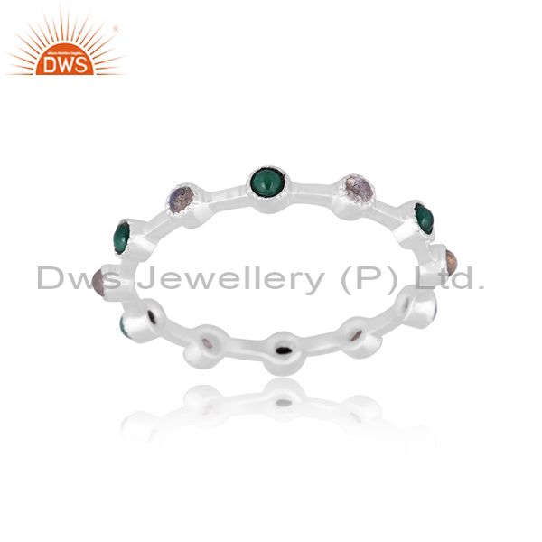 Labradorite And Malachite Set Fine 925 Silver Statement Ring