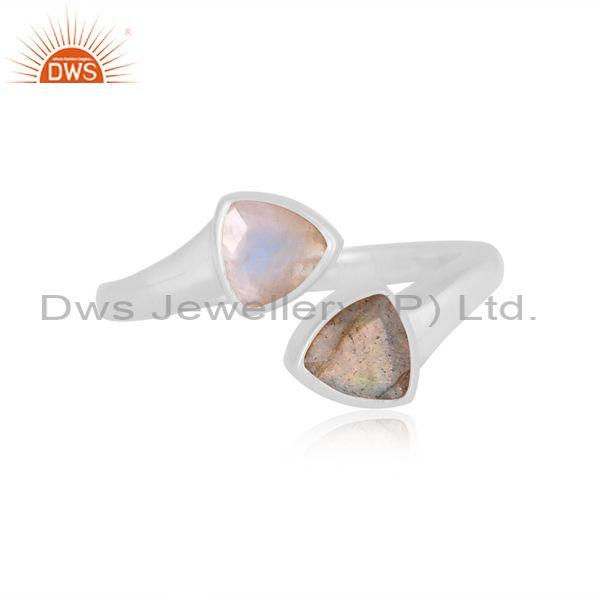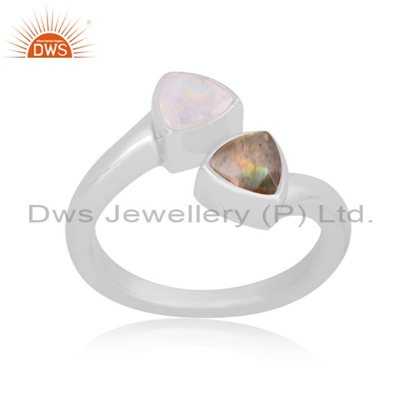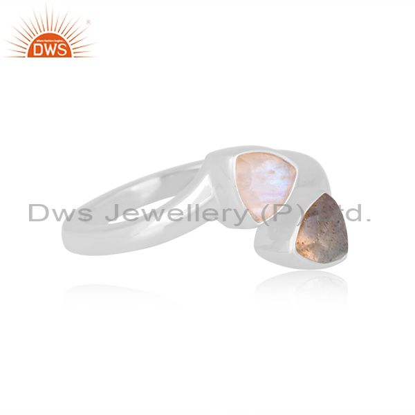 Labradorite And Rainbow Moon Stone Set Fine 925 Silver Ring