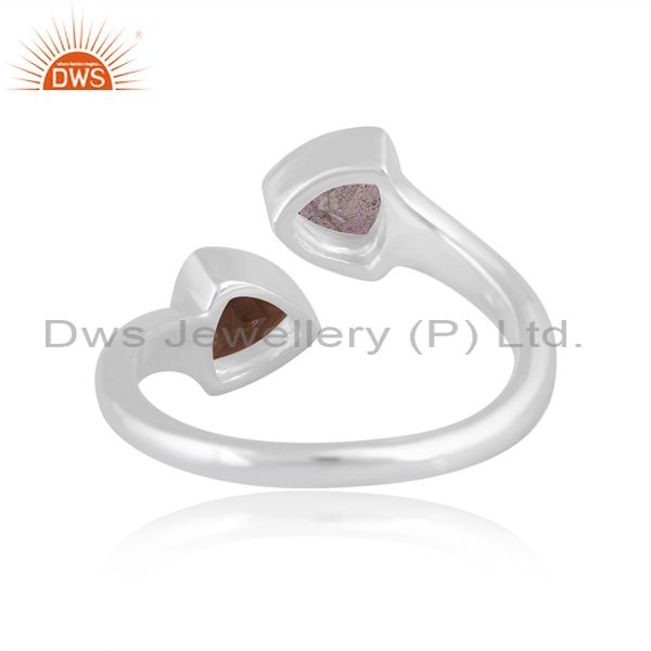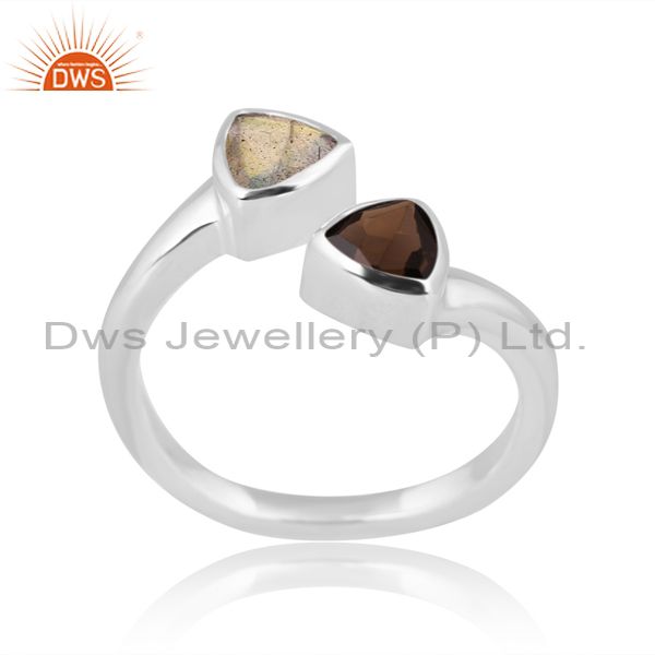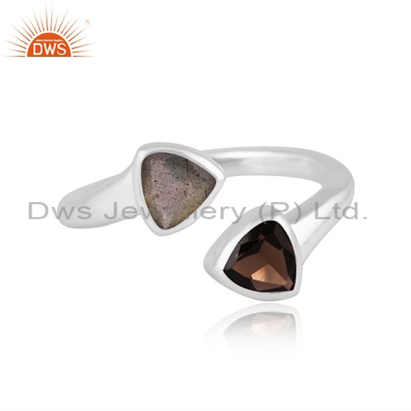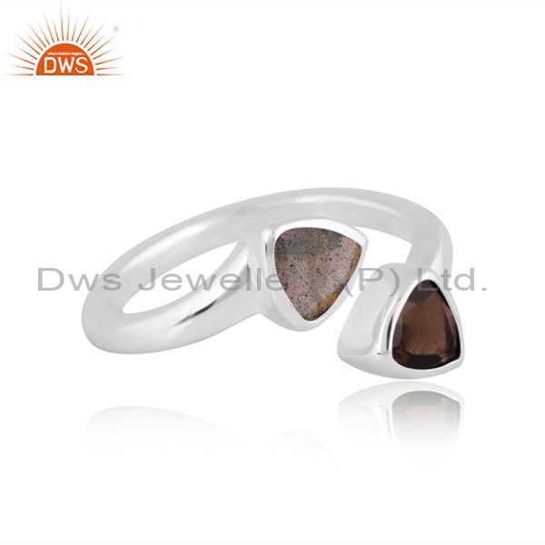 Labradorite And Smoky Set Fine 925 Sterling Silver Open Ring
