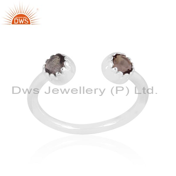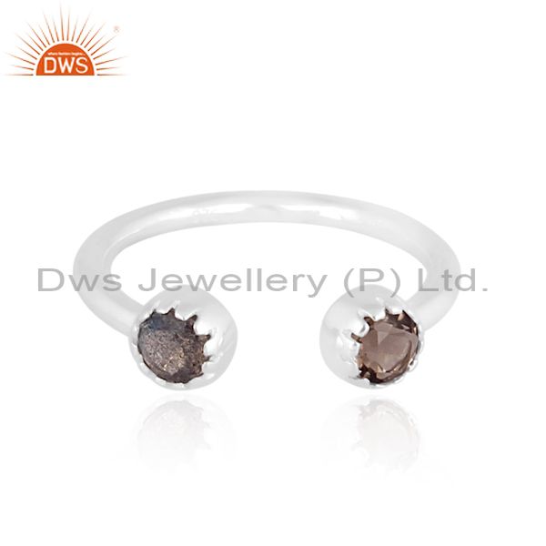 Labradorite And Smoky Set Fine Sterling Silver Designer Ring