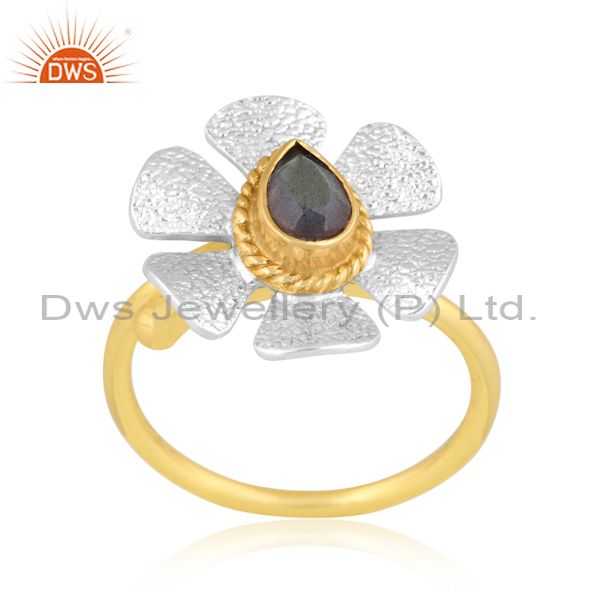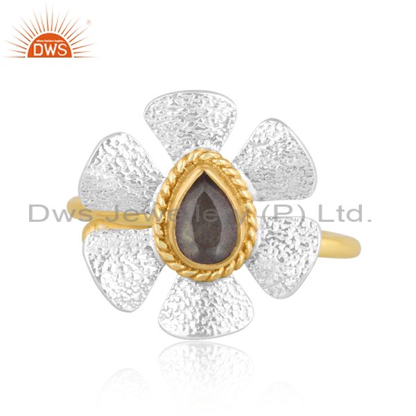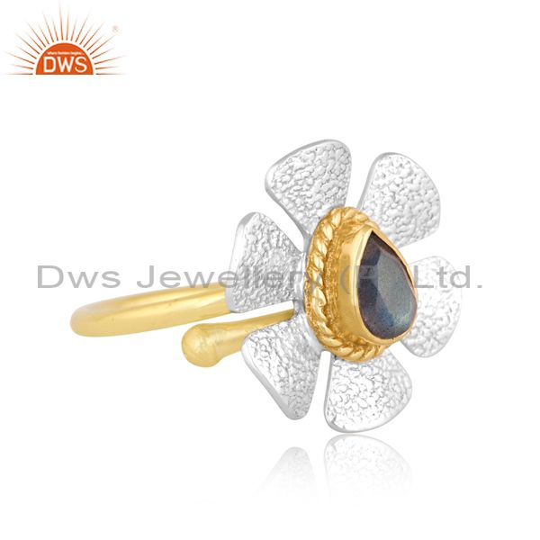 Labradorite Brass Gold And White Handmade Floral Fancy Ring