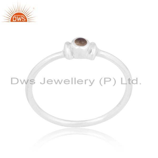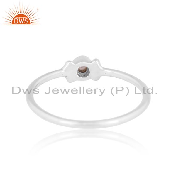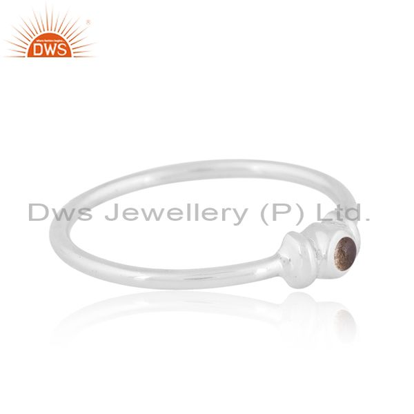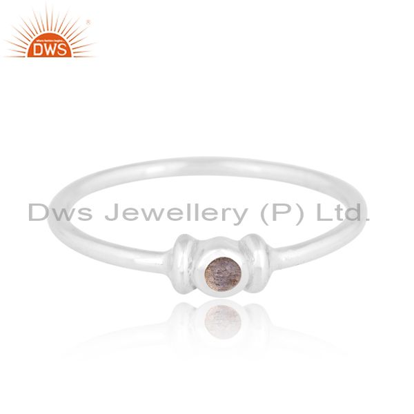 Labradorite Cabochon Round Gem On White Sterling Silver Ring