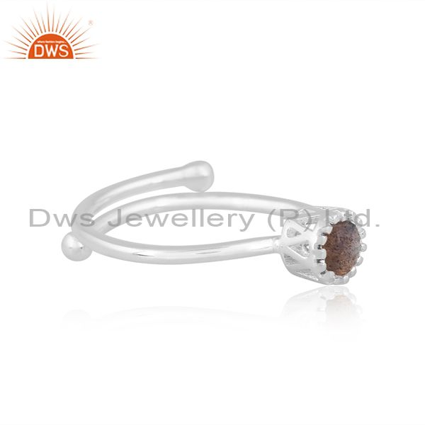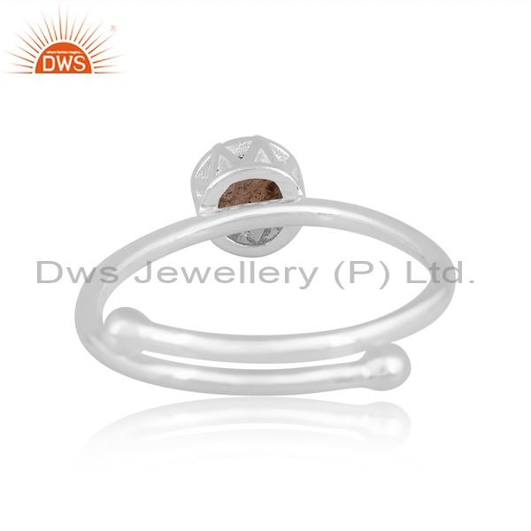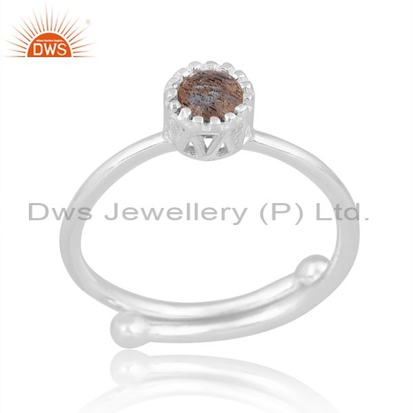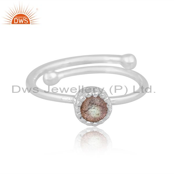 Labradorite Cabochon Round On White Sterling Silver Ring